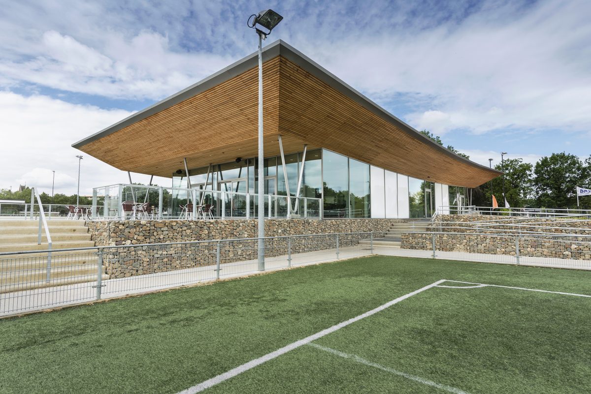 >Het door ons ontworpen kleed- en clubgebouw op Sportlandgoed De Haamen is genomineerd