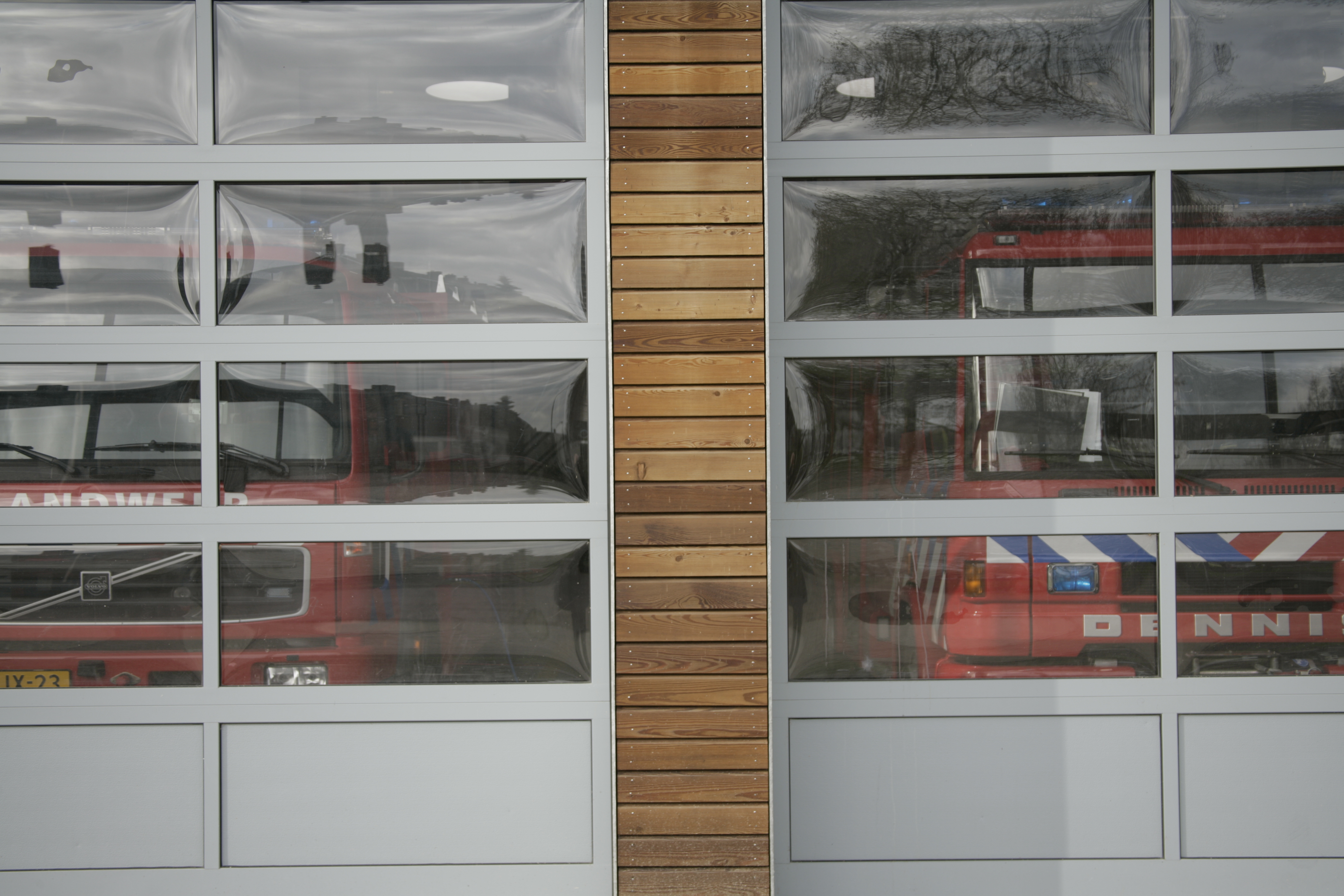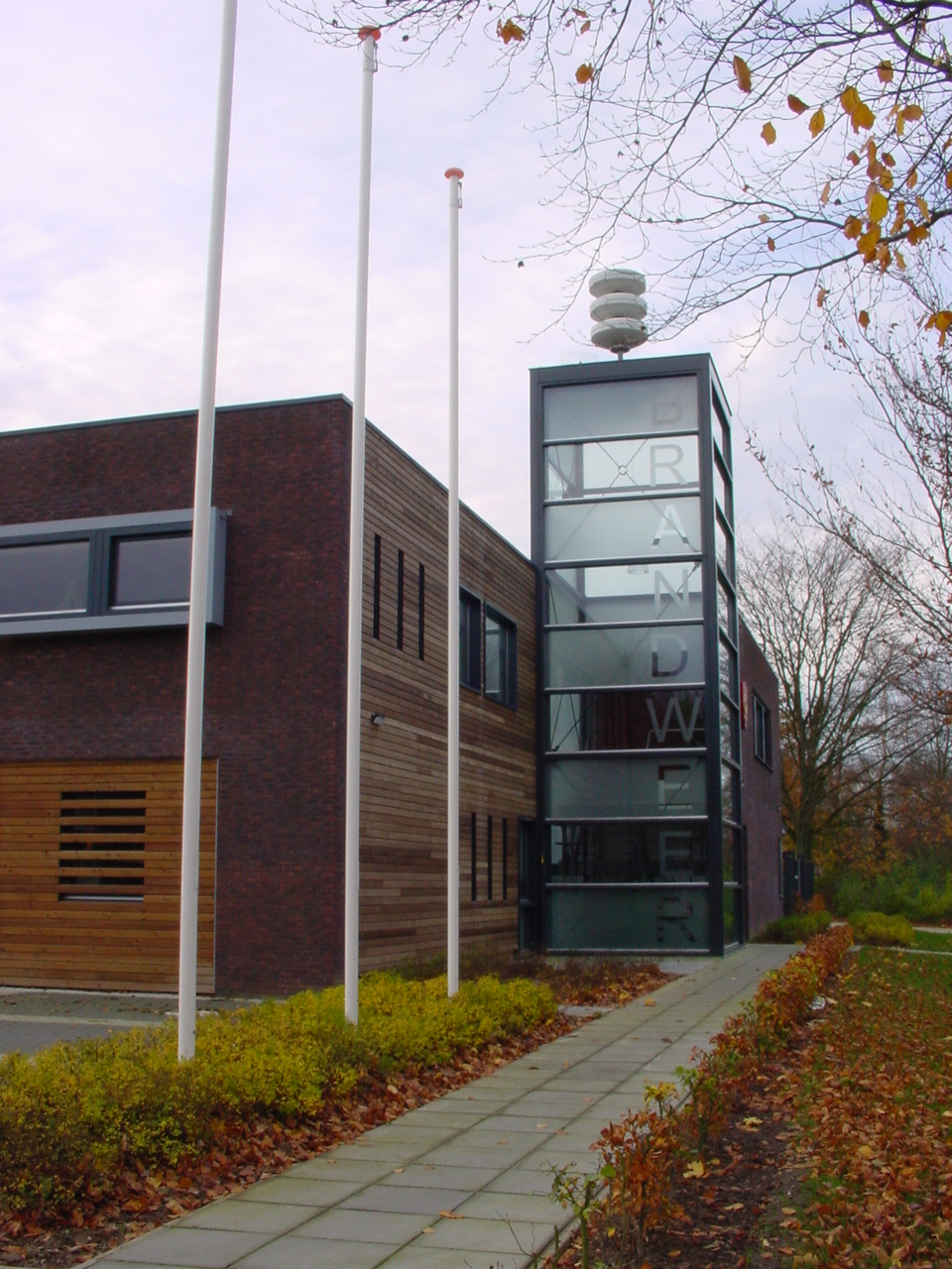 Onze opdracht was om een brandweerkazerne te ontwerpen op de locatie van de huidige kazerne. Kenmerkend voor de locatie is de groene openbare ruimte waarin de kazerne is gelegen. Deze groene openbare ruimte ligt midden in een woongebied. Bij de uitvoering van de kazerne is vooral rekening gehouden met de omliggende bebouwing. Het materiaalgebruik bestaat uit glas, gecombineerd met duurzaam hout en baksteen. Het glazen trappenhuis staat in de as van de groene openbare ruimte en verankerd zodoende de kazerne.