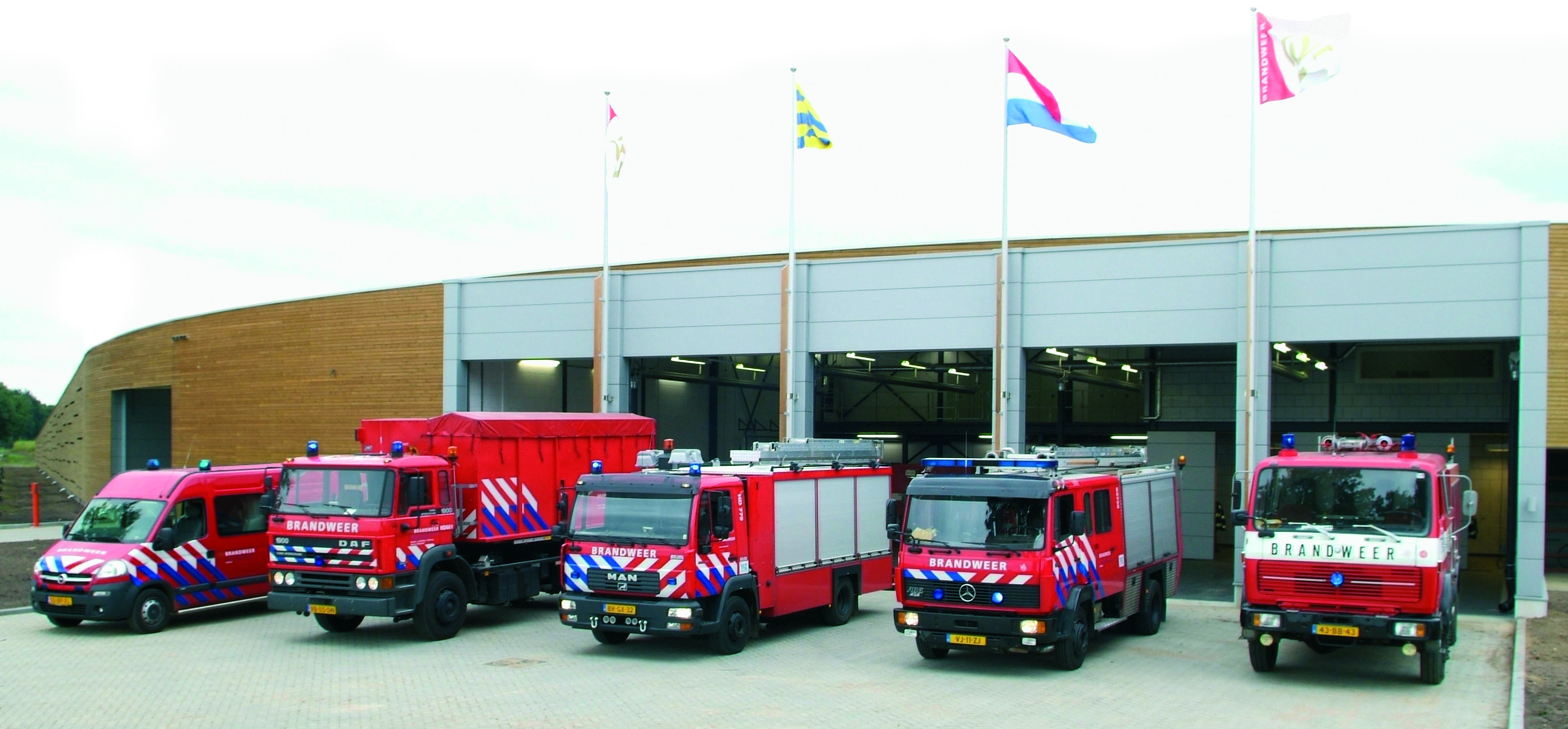 Het programma van eisen bestaat uit het realiseren van een combinatie voor de brandweerkazerne en de gemeentewerf. De locatie bevindt zich aan de rand van het bedrijventerrein aan de J.F. Kennedystraat en vormt de overgang naar het buitengebied. Het architectonisch concept is gebaseerd op het omvatten van al die programma onderdelen tot een gebouw middels ‘het scherm’. Het materiaalgebruik bestaat uit glas, gecombineerd met duurzaam hout. De brandweerkazerne is als metalen doosje verbijzonderd in de houten aflopende gevel en krijgt daarmee zijn identiteit. Alle functies zijn opgenomen achter het scherm met daar als apart volume uitstekend de remise van de brandweerkazerne.