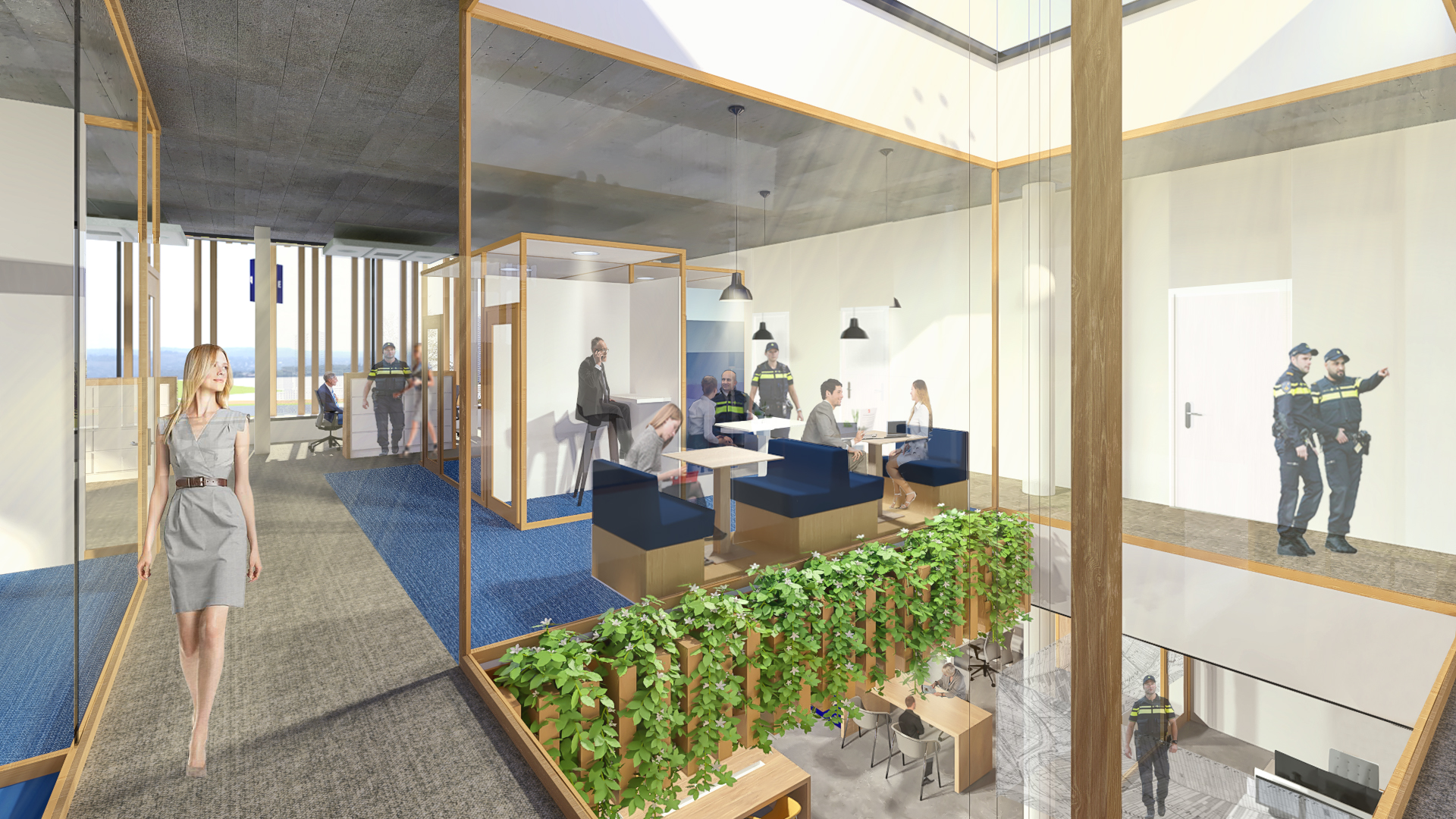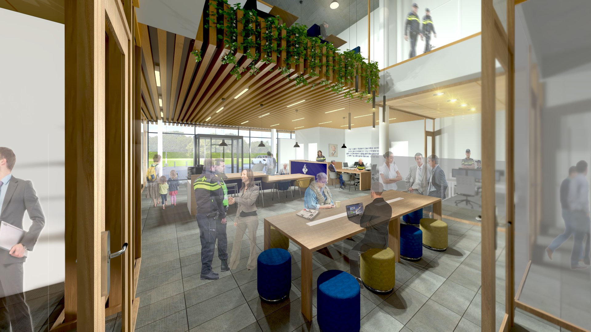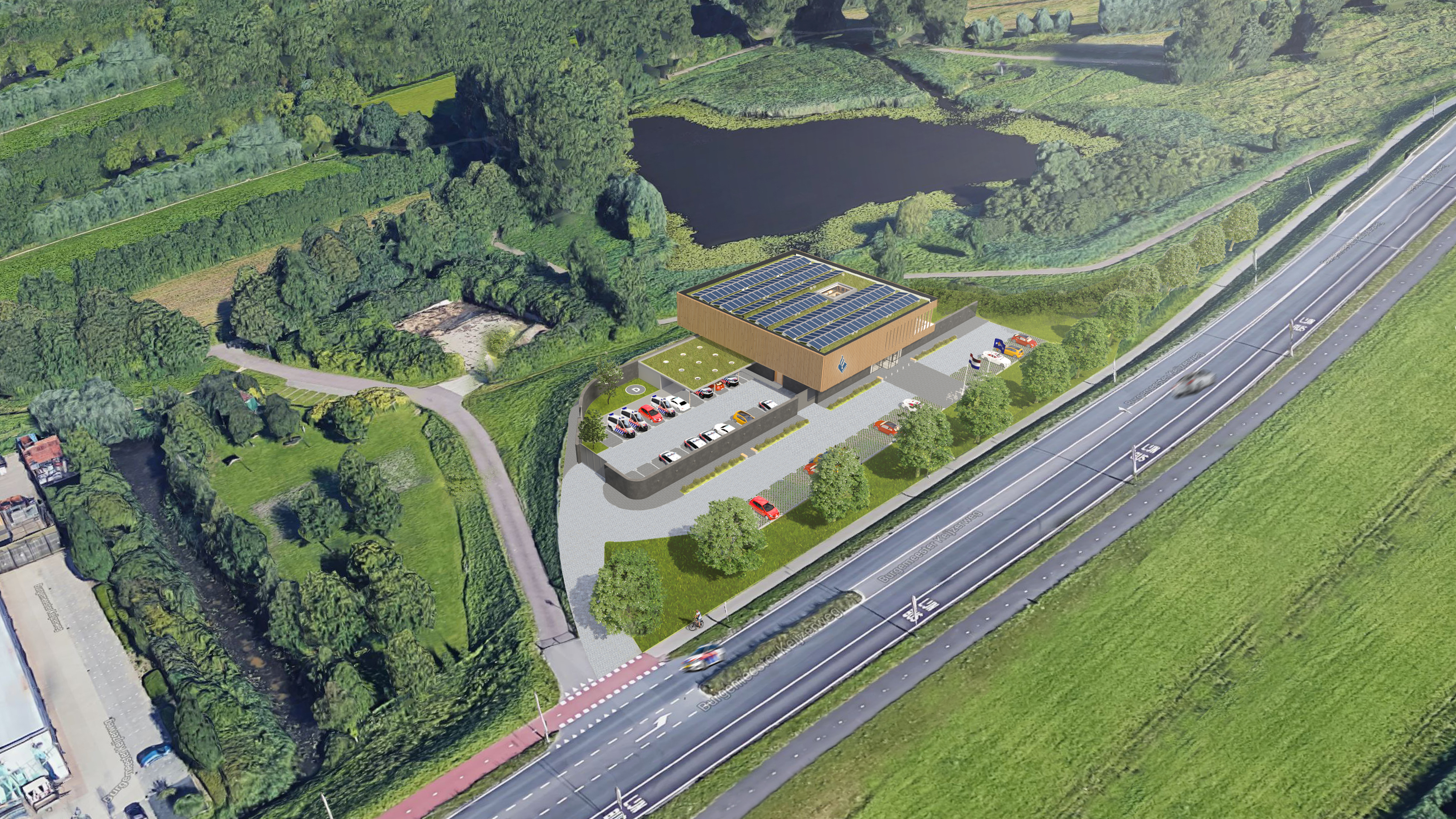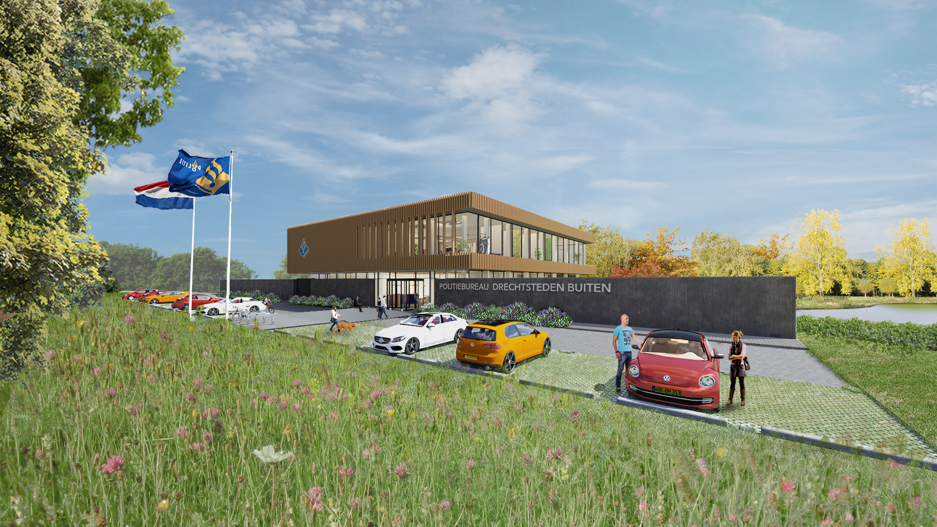 In opdracht van de Nationale Politie zijn wij geselecteerd om een visie op het ontwerp te maken voor de Nieuwbouw RBT Drechtsteden Buiten. Het gebouw komt op een prachtige zichtlocatie te liggen. Het gebouw straalt harmonie uit dankzij zijn rustige, natuurlijke kleurenpallet en het uitgebalanceerde gebruik van rauwe, natuurlijke materialen zoals hout, beton glas en staal. De verschijningsvorm is afwijkend, maar maakt onderdeel uit van zijn omgeving en presenteert zich voor passanten als een paviljoen, dat boven de boomtoppen van de houtwal van de Burgemeester Keijzerweg uitsteekt als ware het een vogelspotterstoren. De lange betonnen tuinmuur is door zijn ronde vormen en tactiele detaillering aanraakbaar, maar houdt tevens bezoekers op respectabele afstand. Door de verticale lamellen en de terugliggende glaspartij op de verdieping wordt inkijk op het politiewerk aan het zicht onttrokken en hinderlijke inkijk voorkomen.