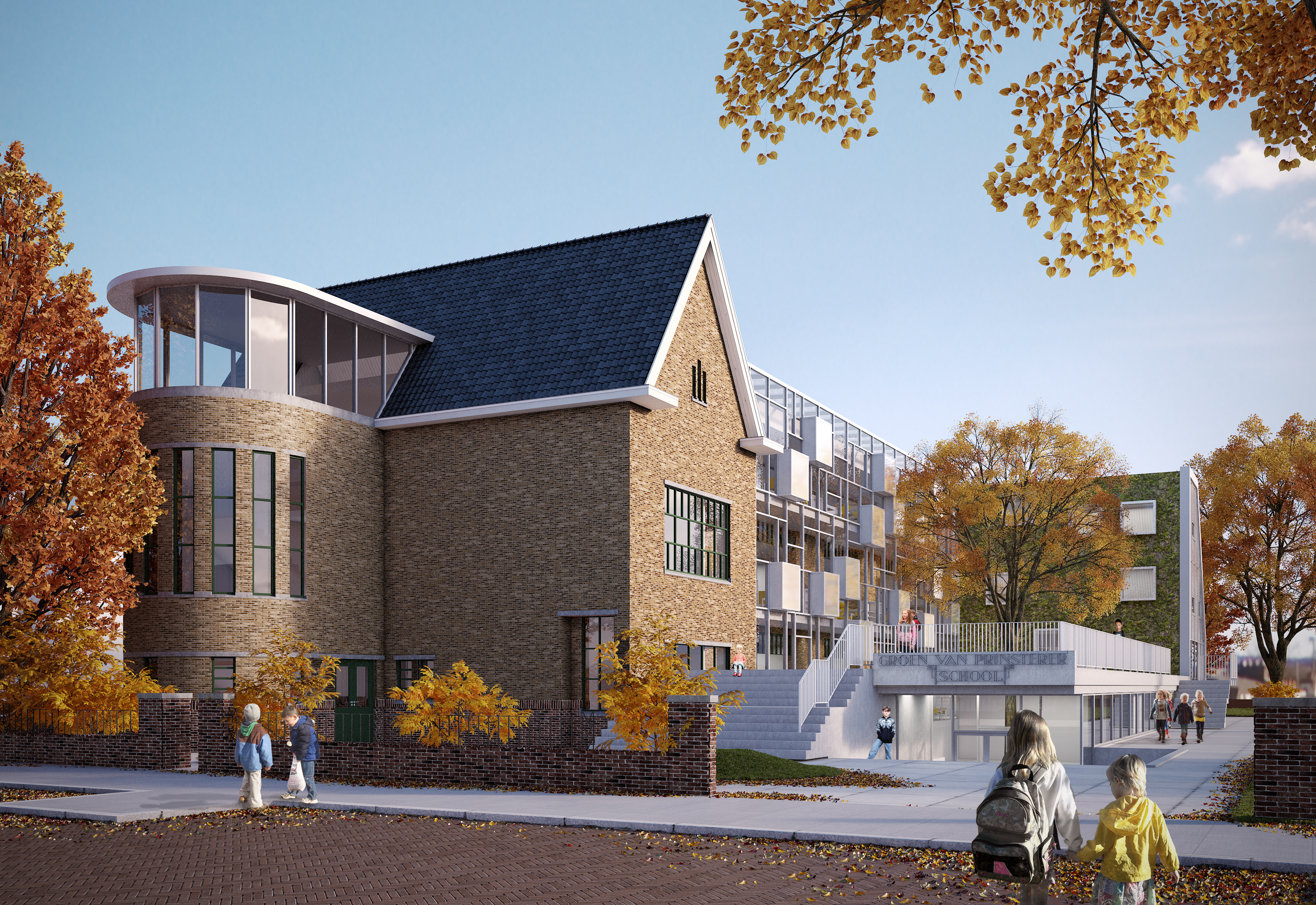 In opdracht van de St. Lucas Onderwijs te Leidschendam hebben wij een ontwerpvisie vervaardigd om op de huidige locatie van de Groen van Prinstererschool te Voorburg de school te renoveren en deels uit te breiden middels nieuwbouw. De Groen van Prinstererschool, gebouwd in 1931, wordt gerenoveerd en aangepast naar de huidige maatstaven en normen voor een onderwijsgebouw. Ter plaatse van het huidige gymnastiekgebouw circa 220m2 bvo, zal er een nieuw bouwdeel worden geplaatst, het overige gebouw wordt gerenoveerd. Het schoolgebouw heeft een hoge monumentenwaarde. Het gebouw moet geschikt worden gemaakt voor het geven van onderwijs aan kinderen van 4 tot 12 jaar, daarnaast dient er een peuterspeelzaal gehuisvest worden voor kinderen van 2,5 tot 4 jaar.