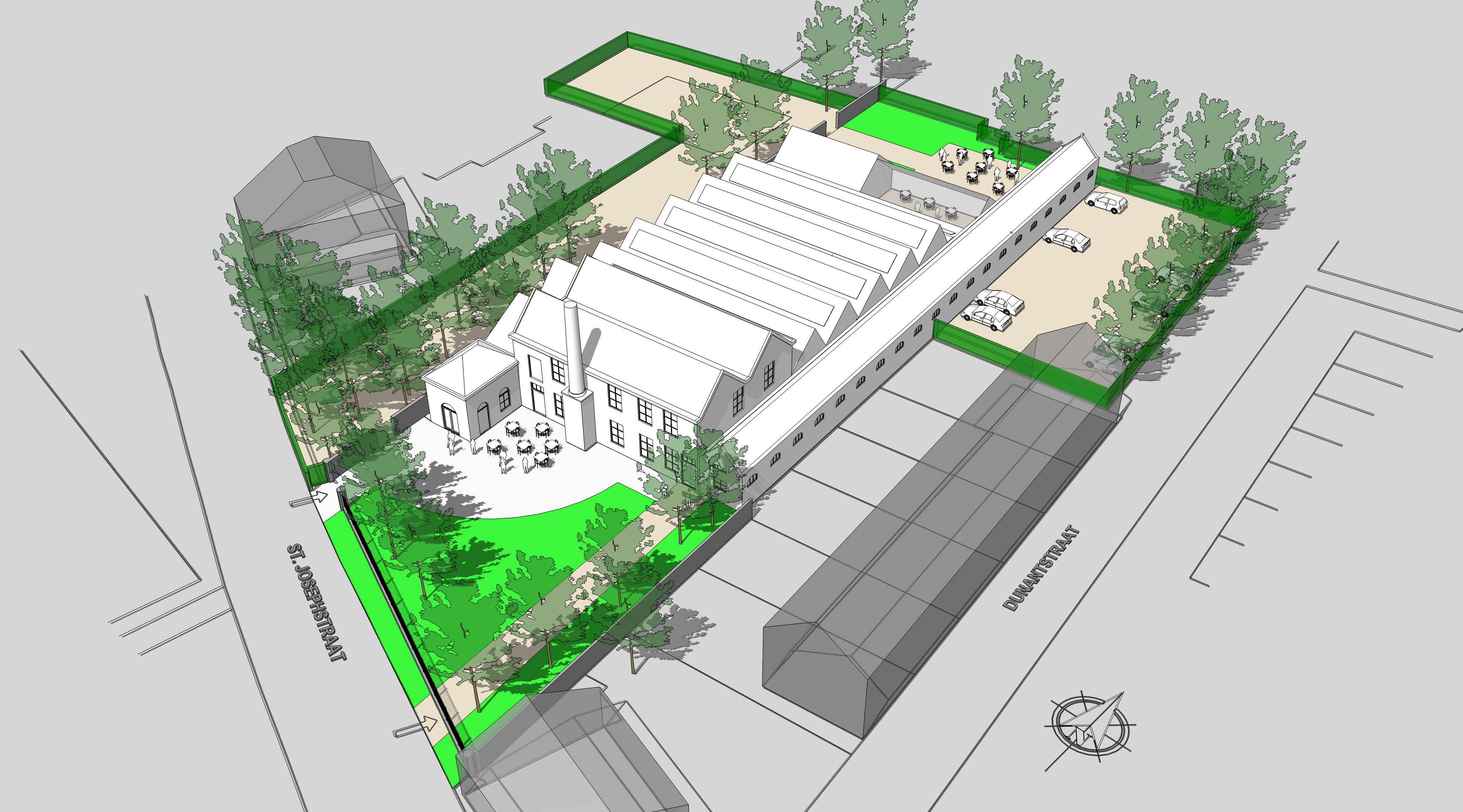 Ons bureau is gevraagd een ontwerpvisie te geven op de transformatie van de oude textielfabriek ’t Duvelhok in het centrum van Tilburg tot studentencentrum. De oorspronkelijke structuur van het gebouw bleek een perfecte drager voor de invulling van dit toekomstige brandpunt voor studenten. Een mensa, studiewerkplekken, overlegplekken, ruimten voor bijeenkomsten en activiteiten zullen onderdeel vormen van het centrum. In onze visie wordt integraal ingezet op duurzaamheid en zorgvuldige invullingen en detailleringen om dit prachtige cultureel erfgoed binnen zijn monumentale karakter af te stemmen op hedendaagse wensen en toekomstig gebruik.