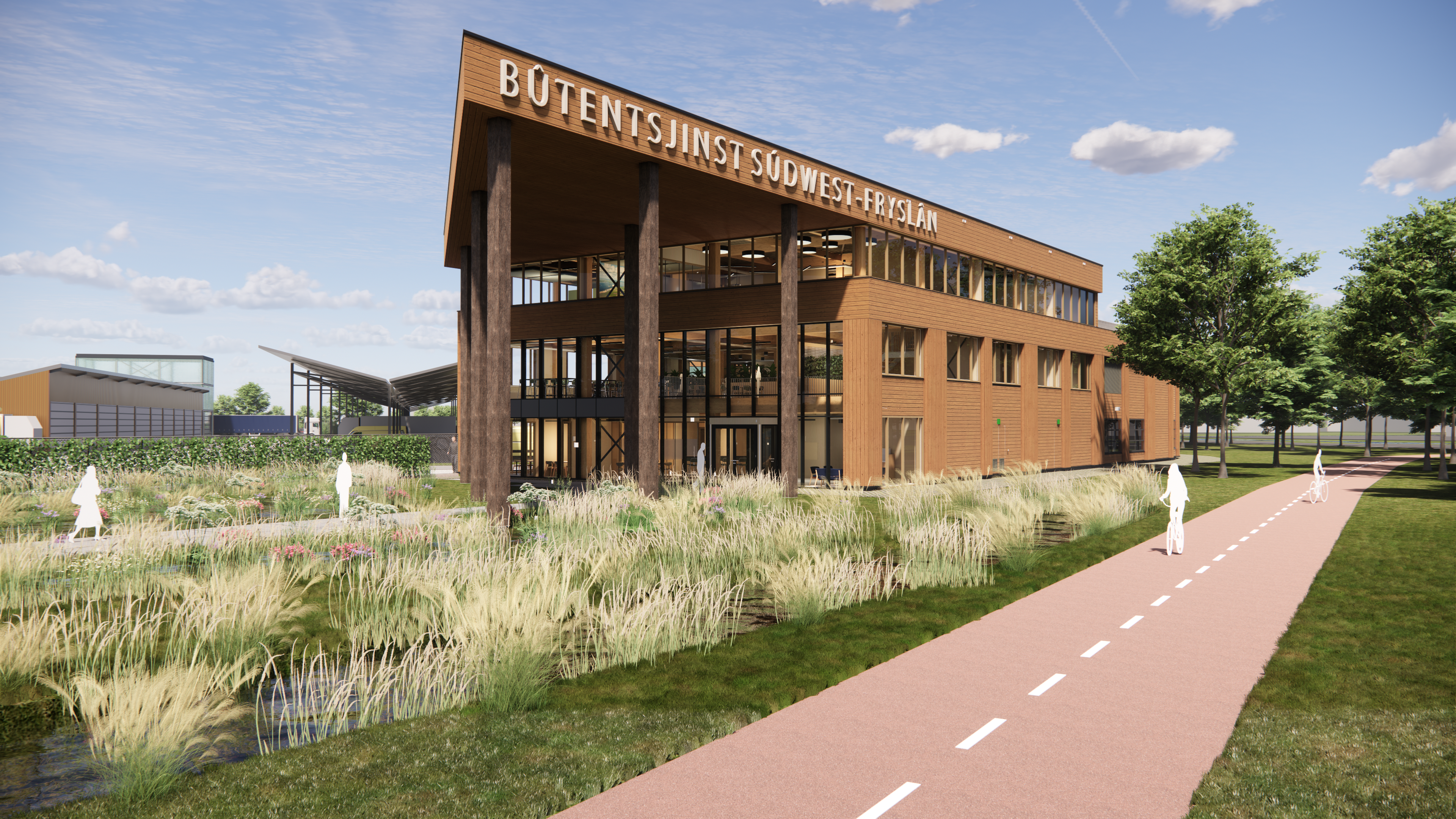 De uitvoering van de nieuwe, duurzame huisvesting voor de buitendienst in Bolsward is begonnen! Samen met gemeente Súdwest-Fryslân realiseren we een toekomstbestendige locatie met moderne kantoren, vergader- en kleedruimten, goed uitgeruste werkplaatsen, een wasplaats en ruime stallingsvoorzieningen. Alles is slim ontworpen voor een efficiënte dienstverlening. We bouwen circulair, met hergebruikte en natuurlijke materialen – goed voor de mensen én de omgeving.